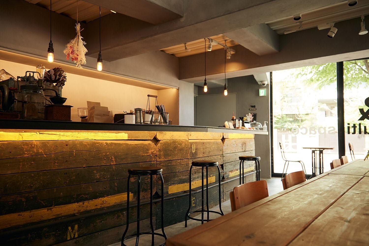 実際に運営している、インダストリアルな雰囲気のカフェエリア。