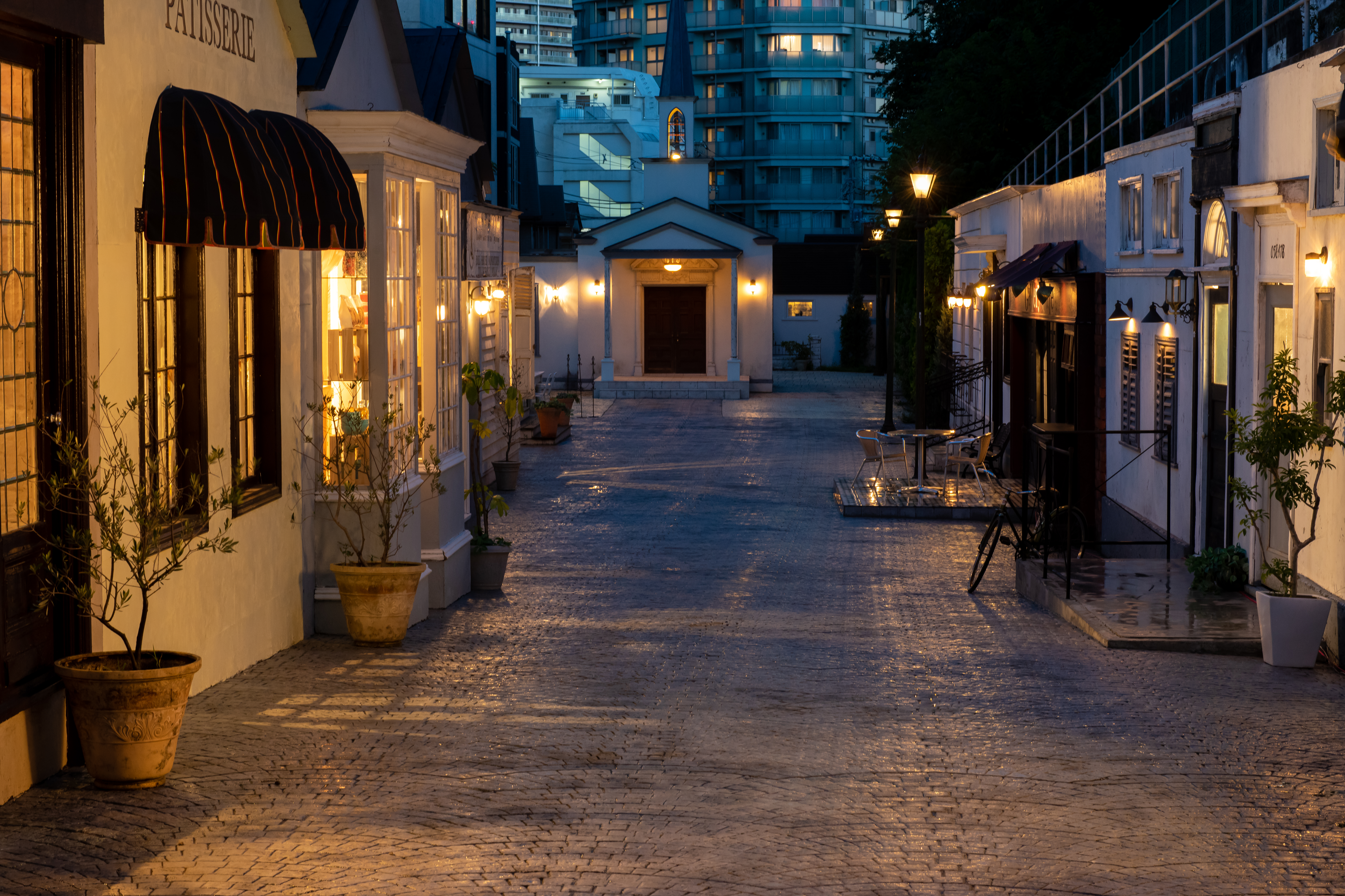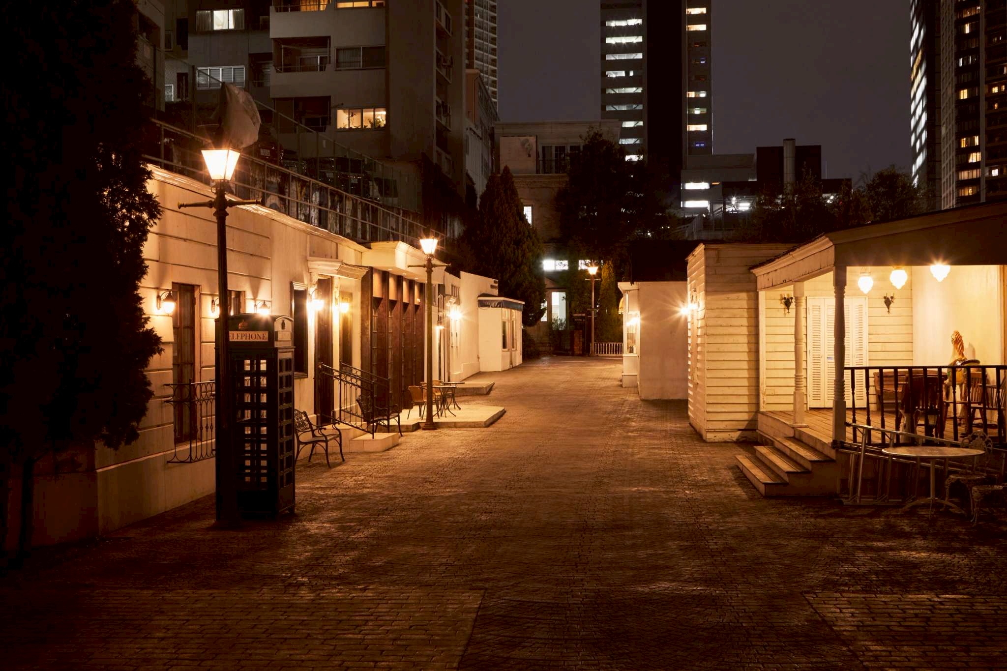 日没後は街灯などの照明を点灯させることができ、日中とは雰囲気の異なるシーンの撮影ができます。